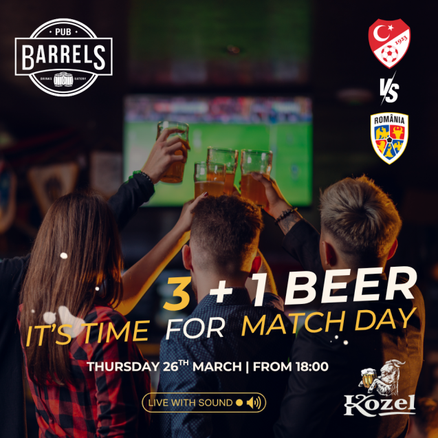 Joi la #Barrels ne adunăm pentru națională! Difuzăm Turcia VS România LIVE pe toate TV-urile, cu sonor!