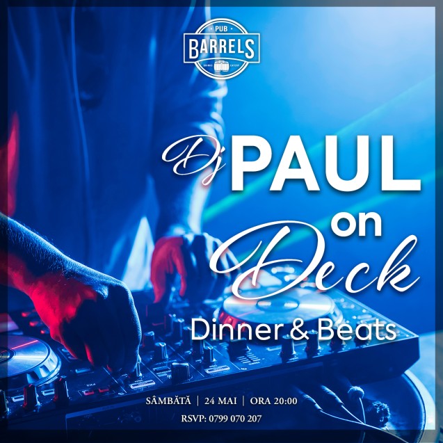Sâmbăta asta dăm volumul mai tare la #Barrels! DJ Paul urcă la pupitru, tu alegi ce-ți place din meniu și seara începe cu vibe-ul perfect. Dinner & Beats e combinația care transformă o simplă sâmbătă într-o noapte de ținut minte!