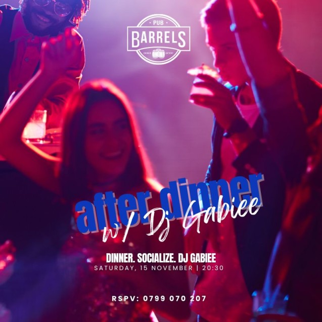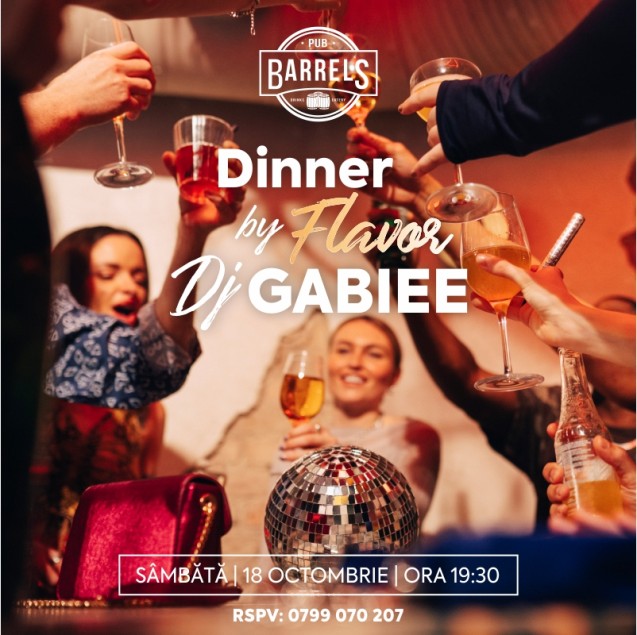 Începem cu o cină delicioasă la Barrels Pub și continuăm cu un DJ set live semnat GABIEE, care transformă vibe-ul mesei în party de noapte.