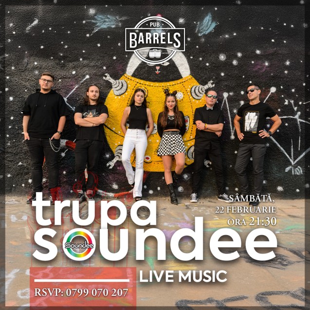Sâmbătă lăsăm playlist-urile pe pauză! Trupa SOUNDEE urcă pe scenă, cocktailurile se ciocnesc, mesele sunt pline, iar tu știi deja că nu pleci devreme. Muzică live, oameni cu vibe și o atmosferă care nu se explică, doar se trăiește.