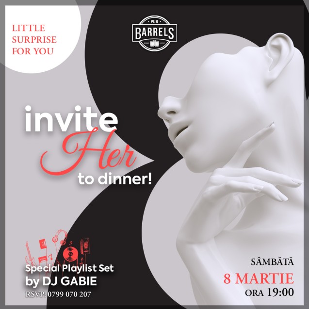 Invite her to dinner! De 8 Martie, oferă-i o seară specială la #BarrelsPub. Pe lângă atmosfera şi cina perfectă, am creat HER - un desert surprinzător, cu texturi fine și arome rafinate, dedicat exclusiv acestei seri.